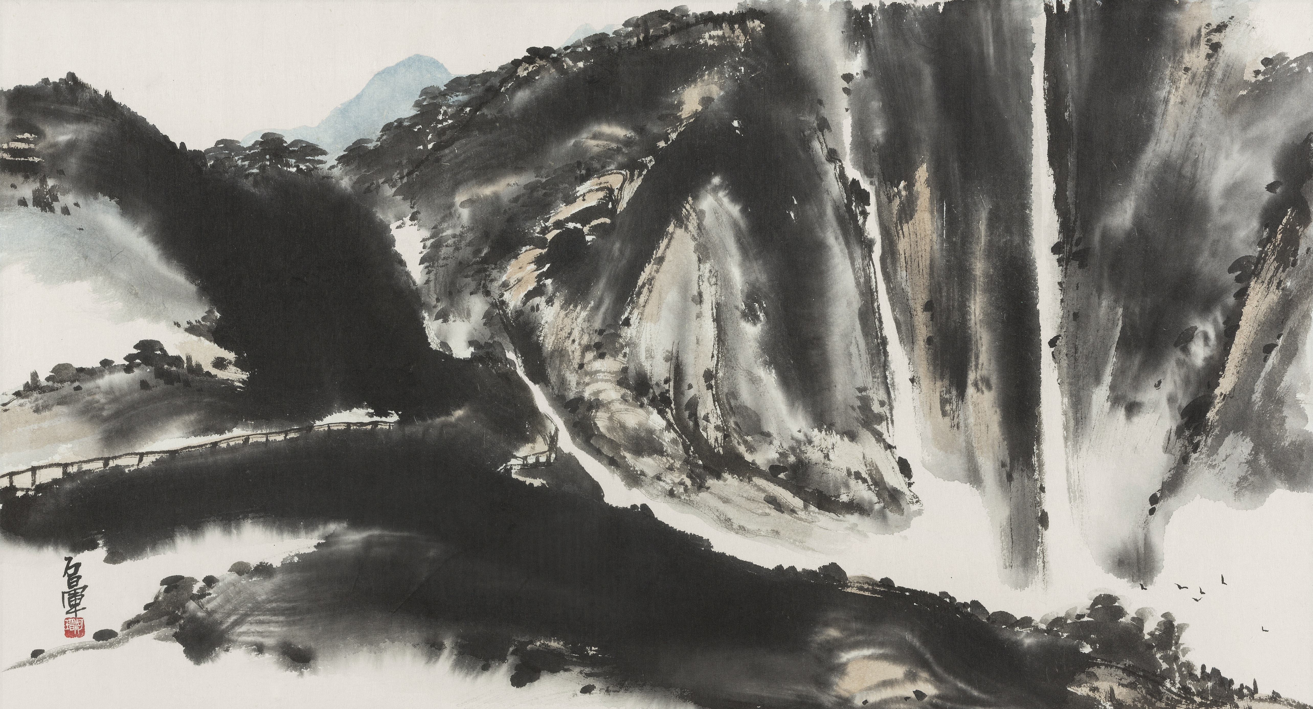 발묵산수